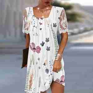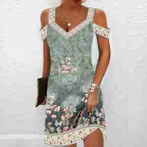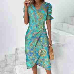 Gold Trim Mandala Print Wrap V-Neck Mini Dress