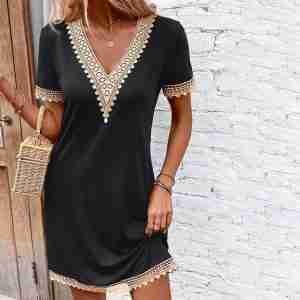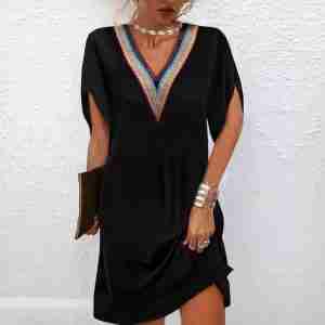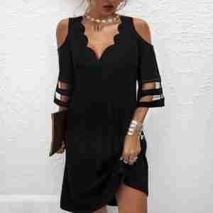 Cut-Out V-Neck Stripe Sleeve Cold Shoulder Mini Dress