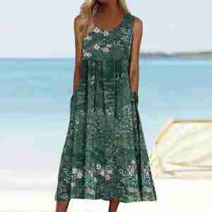 Fresh Print Sleeveless Midi Dress