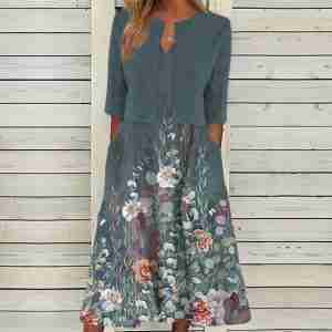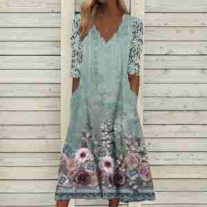 Fresh Half Sleeve Print Midi Dress