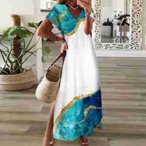 Fresh Short Sleeve Print Maxi Dress