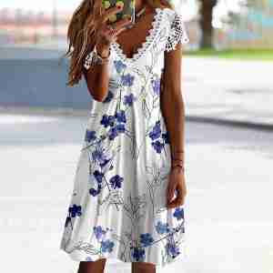 Fresh Short Sleeve Floral Print Mini Dress
