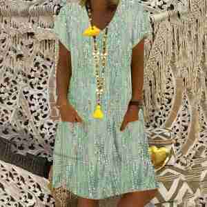 Fresh Short Sleeve V-Neck Mini Dress