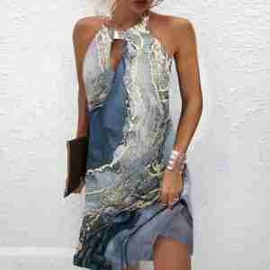 Glam Night Gold Marble Print Ocean Wave Mini Dress