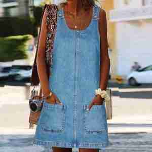 Front Pocket Denim Overall Mini Skirt