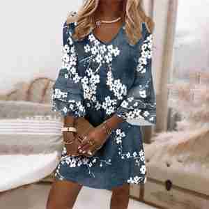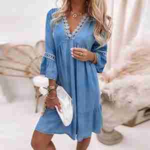 Glamorous 3/4 Sleeve Blue Mini Dress