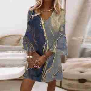 Gold Beach Ocean Waves Marble Print Mini Dress