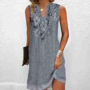 Grey Sleeveless V-Neck Mini Dress