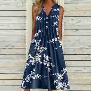 Groovy Floral Print V-Neck Midi Dress