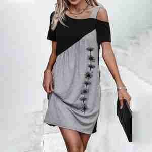 Grey Short Sleeve Print Mini Dress