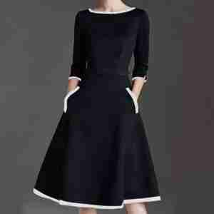 Groovy 3/4 Sleeve Round Neck Midi Dress