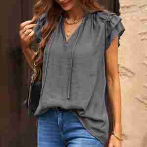 Grey Plain Short Sleeve Top
