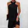 Jet Black Twisted High Halter Sleeveless Mini Dress