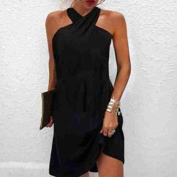 Be the first to review “Jet Black Twisted High Halter Sleeveless Mini Dress”