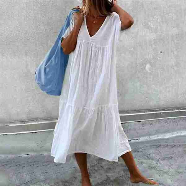Be the first to review “Casual Short Sleeve Plain Midi Dress”