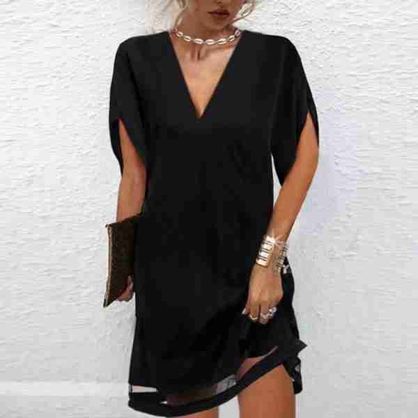 Classy Black Split Sleeve V-Neck Mini Dress