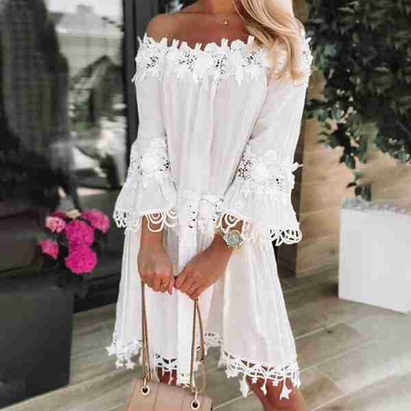 Be the first to review “SImple White Off the Shoulder Mini Dress”