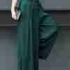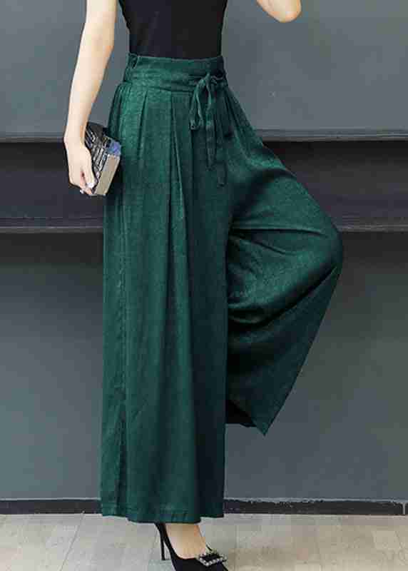 Loose Green Pockets High Waist Tie Waist Maxi Pants Fall