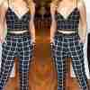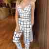 | Product Name | Sexy Suspender V-neck Plaid Cropped Pants Two Piece Set |