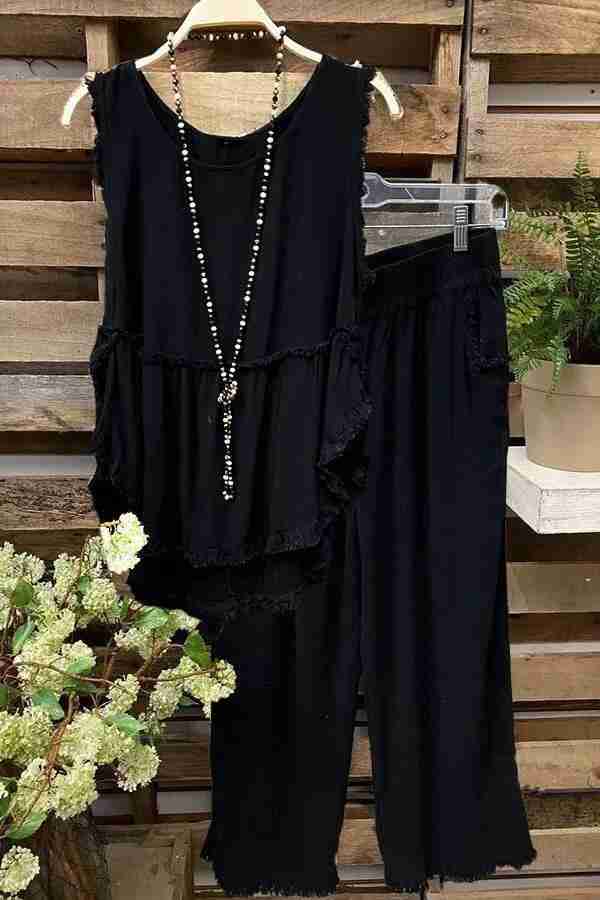Gender:WomenDecoration:PureColorMaterial:Polyester/CottonOccasion:DailyStyle:Casual/FashionTheme:Spring,SummerColor:AsPicturePleaseNote:AllDimensionsAreMeasuredManuallyWithADeviationOf1To3cm. Reviews There are no reviews yet. Be the first to review “Simple Color Loose Sleeveless Suit”Cancel ReplyYour email address will not be published. Required fields are marked *Your rating * Rate… Perfect Good Average Not that bad Very poor Name *Email *Your review *Submit
