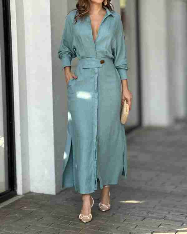 | Product Name | Lapel Long Sleeve Solid Color Dress | |||||