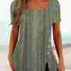 Women’s Short Sleeve U-neck Floral Printed Graphic Button Top