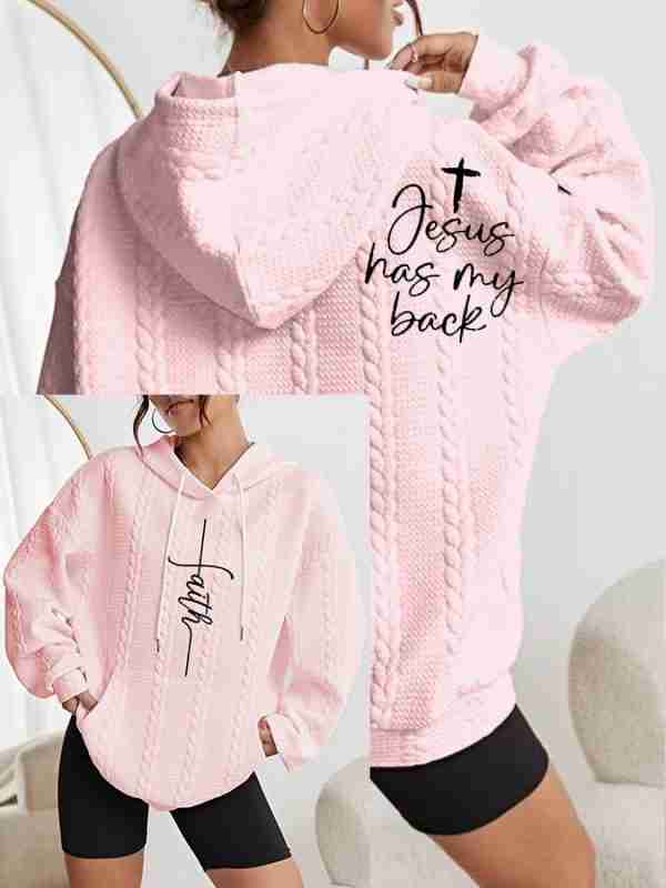 Women’s Faith Jesus Has My Back Printed Casual Cable Hoodie