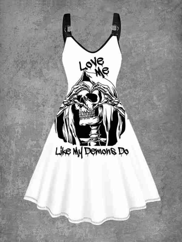 Be the first to review “Women’s Gothic Skeleton and Slogan Print Dress”