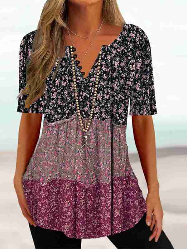 Women’s Half Sleeve V-neck Floral Printed Tops