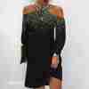 This sophisticated black mini dress is the perfect choice for any date or night out, featuring an ombre snowy nightfall on a caged double strap cold shoulder keyhole top. Loose-fitting long sleeves and a body-skimming waist silhouette make this flirty dress easy to mix and match with boots, high heels, or leggings for cooler nights.