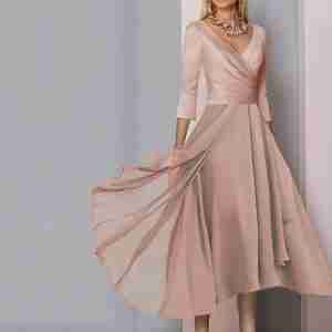 Light Pink Pleated Sleeve A-Line Maxi Dress