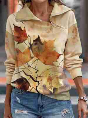 Long Sleeve Casual Floral Printed Zipper Turtleneck Sweatshirts