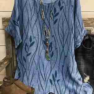 Plus Size Elegant T-shirt, Women’s Plus Casual Floral Print Round Neck Half Sleeve Tee