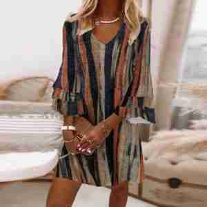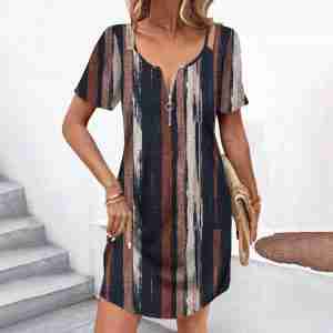 Retro cotton and linen irregular stitching printed half-sleeved loose dress