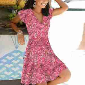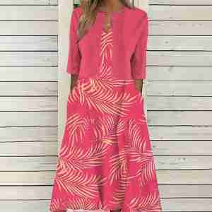 Rose Red Sweet Print Patchwork V Neck A Line Plus Size Dresses