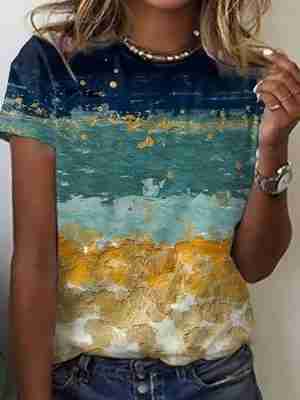 Round Neck Print Gradient Loose Short-sleeved T-shirt