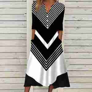 Sailor Stripe Black and White Side Pocket Midi Dress