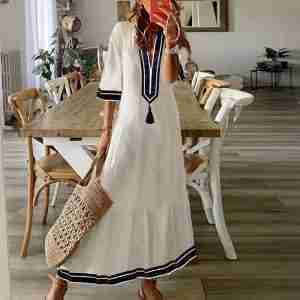 Sailor Blue White Tassel V-Neck Midi Dress