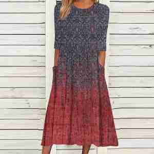 Rustic Red Blue Weathered Midi Dress