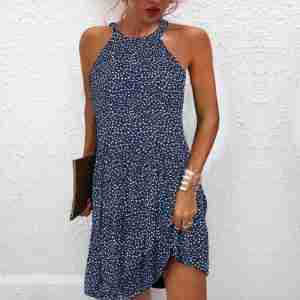 Sexy Print Sleeveless Halter Mini Dress