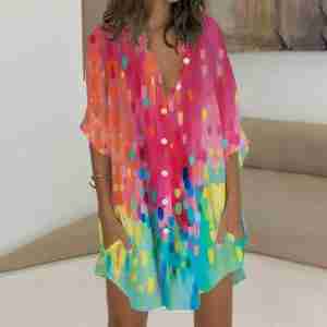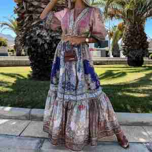 Short Sleeve Printed V Neck Floral Knitting Dress