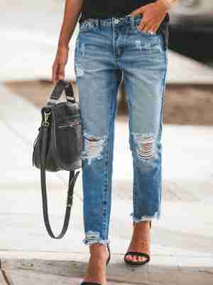 Solid Long Sleeve Cut Out Frayed Hem Denim Jacket