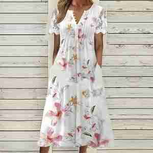 Stylish Short Sleeve Print Midi Dress