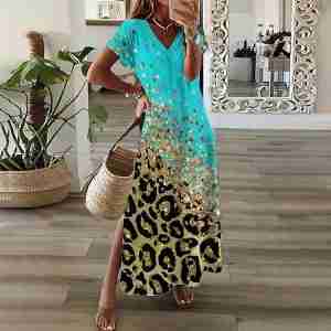 Stylish Short Sleeve Print Maxi Dress