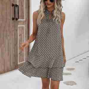 Chic Print Halter Mini Dress