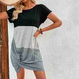 Chic Short Sleeve Color Block Mini Dress
