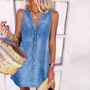 Chic Sleeveless Blue Mini Dress