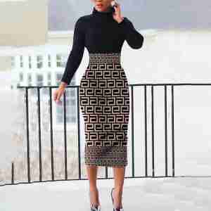 Chic Print High Neck Midi Dress